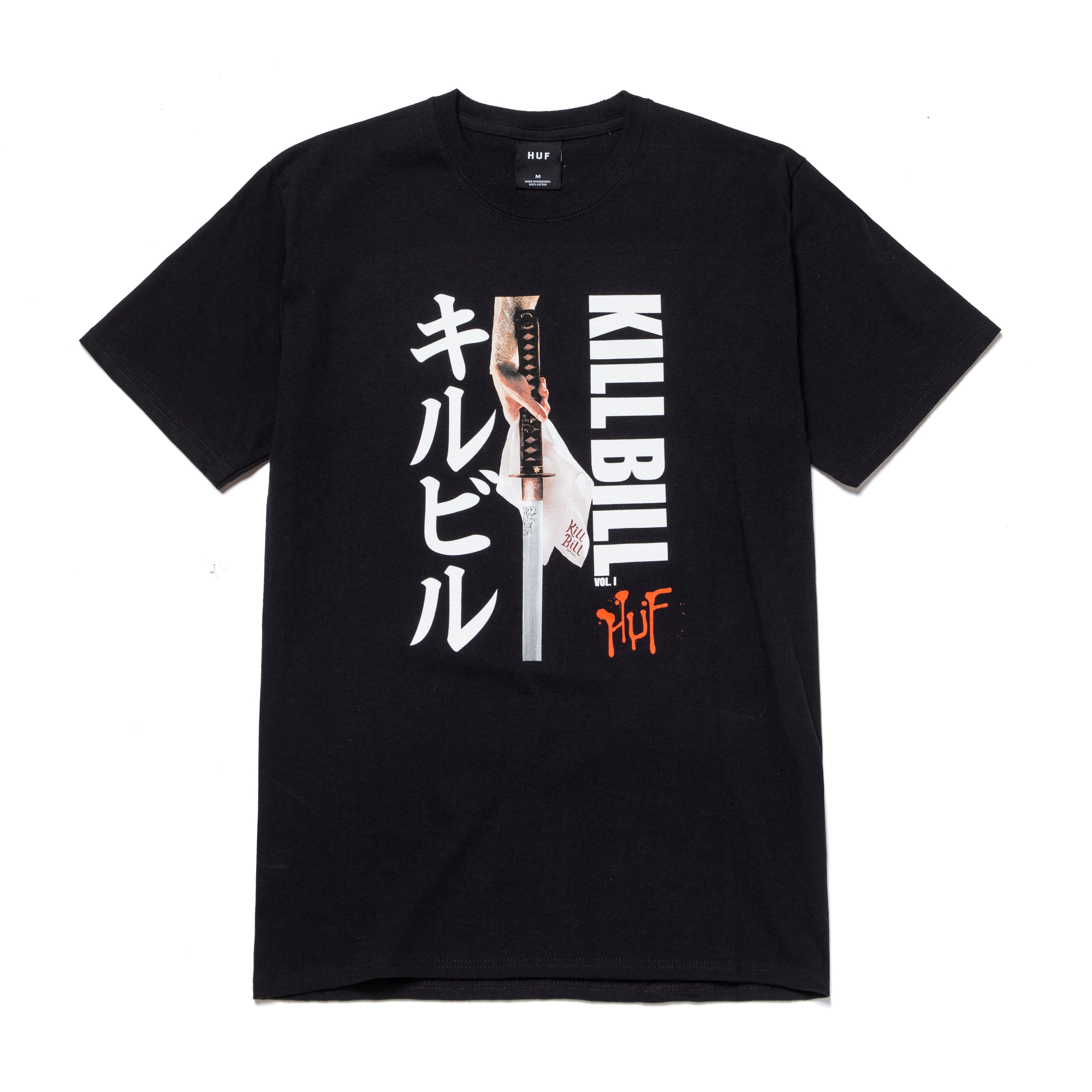 screen-printed huf x kill bill artwork at front features the film’s infamous hanzo katana sword, made by master japanese swordsmith hattori hanzo
