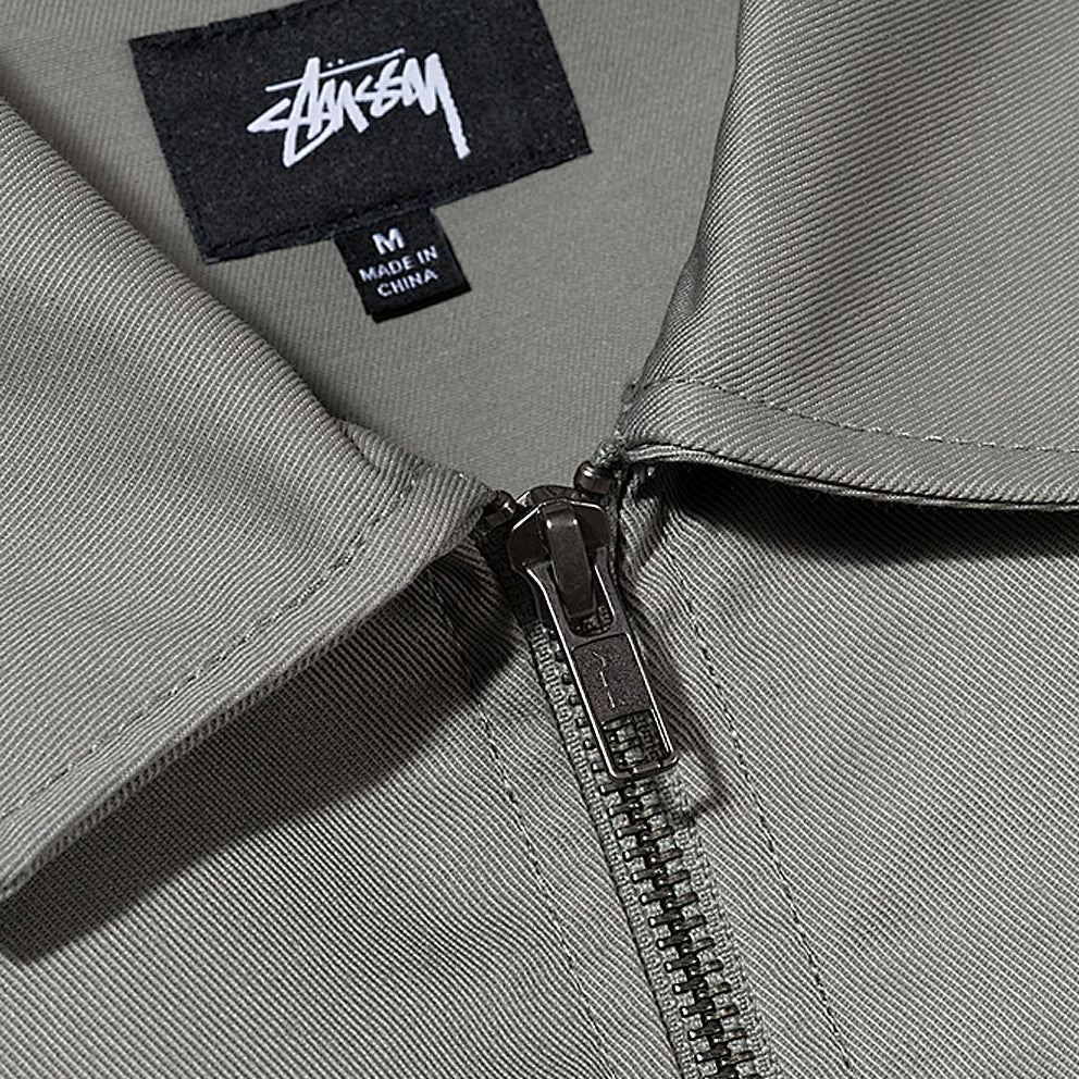 STÜSSY POLY COTTON ZIP UP L/SL SHIRT // GREY