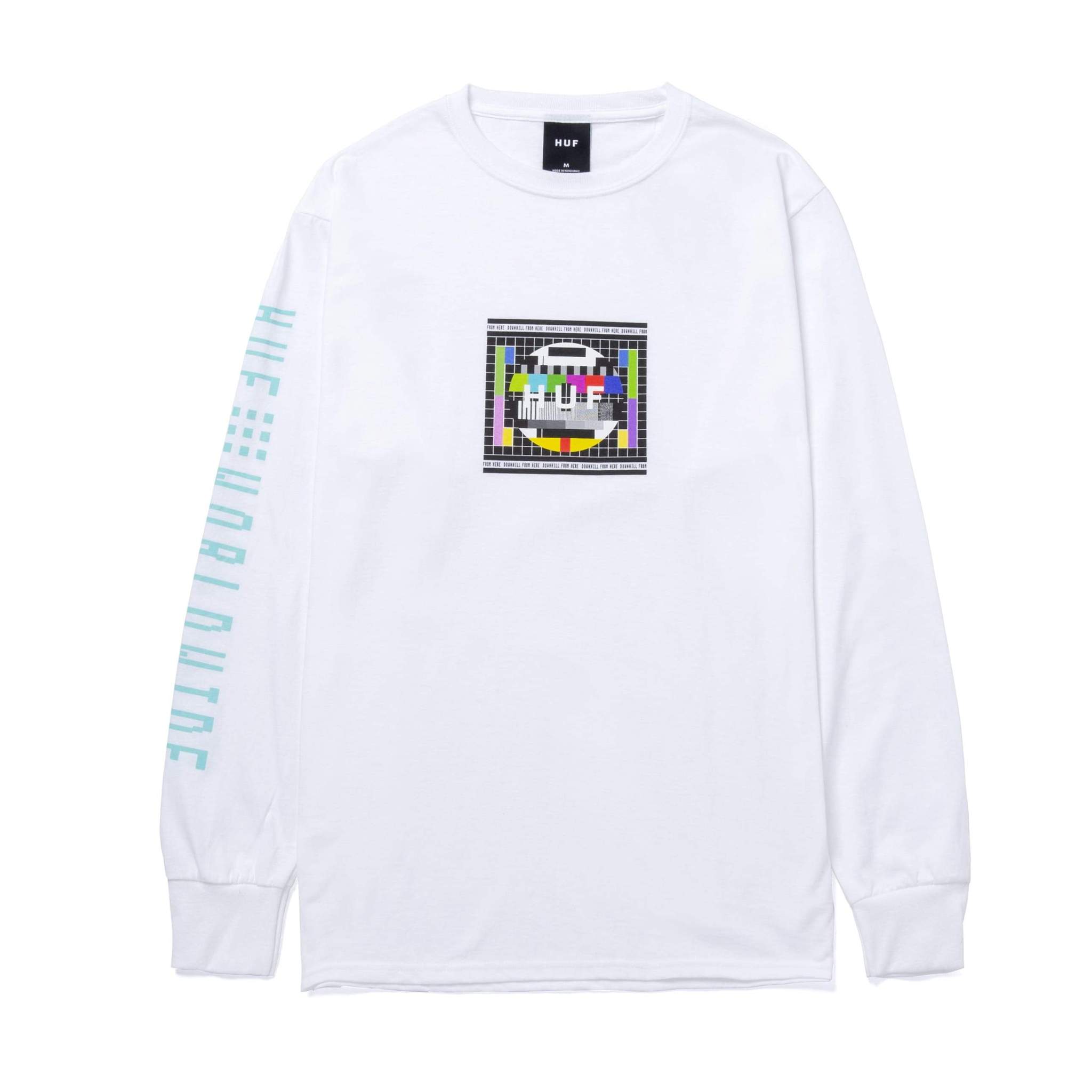 The Test Screen Long Sleeve Tee is made of pure cotton and features a custom HUF graphic inspired by television test cards as a nod to those of us who are awake, but "not all there."