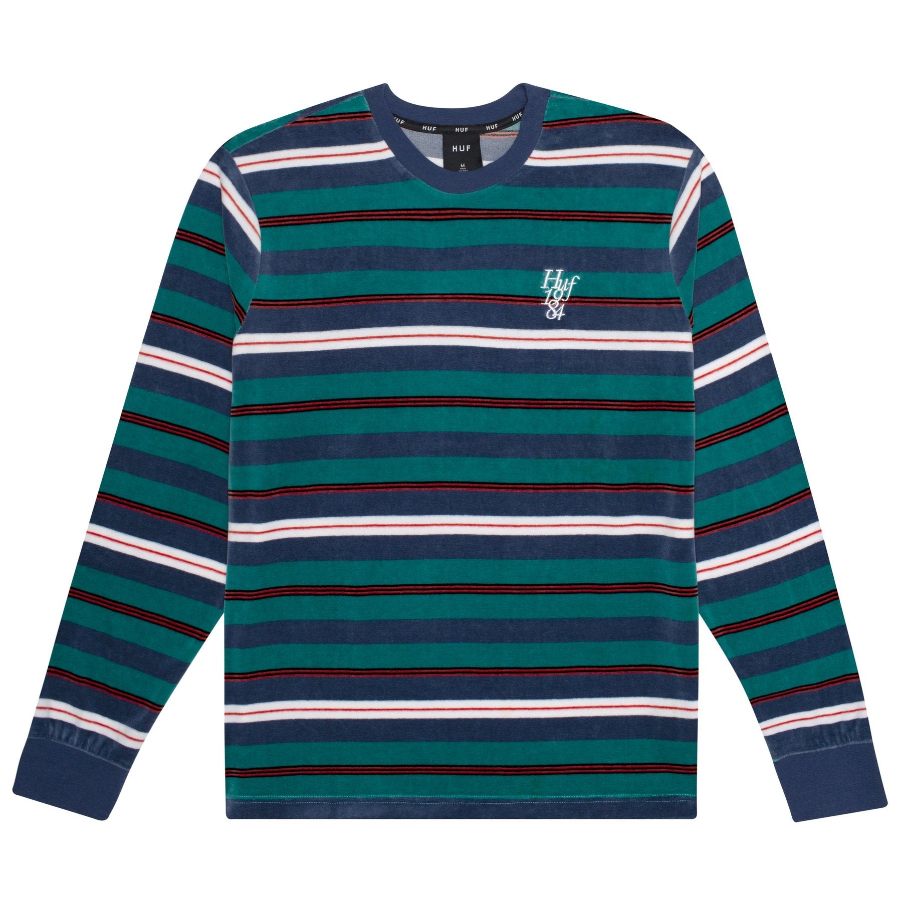 HUF UNVEIL STRIPE VELOUR LONG SLEEVE TOP // QUETZAL GREEN