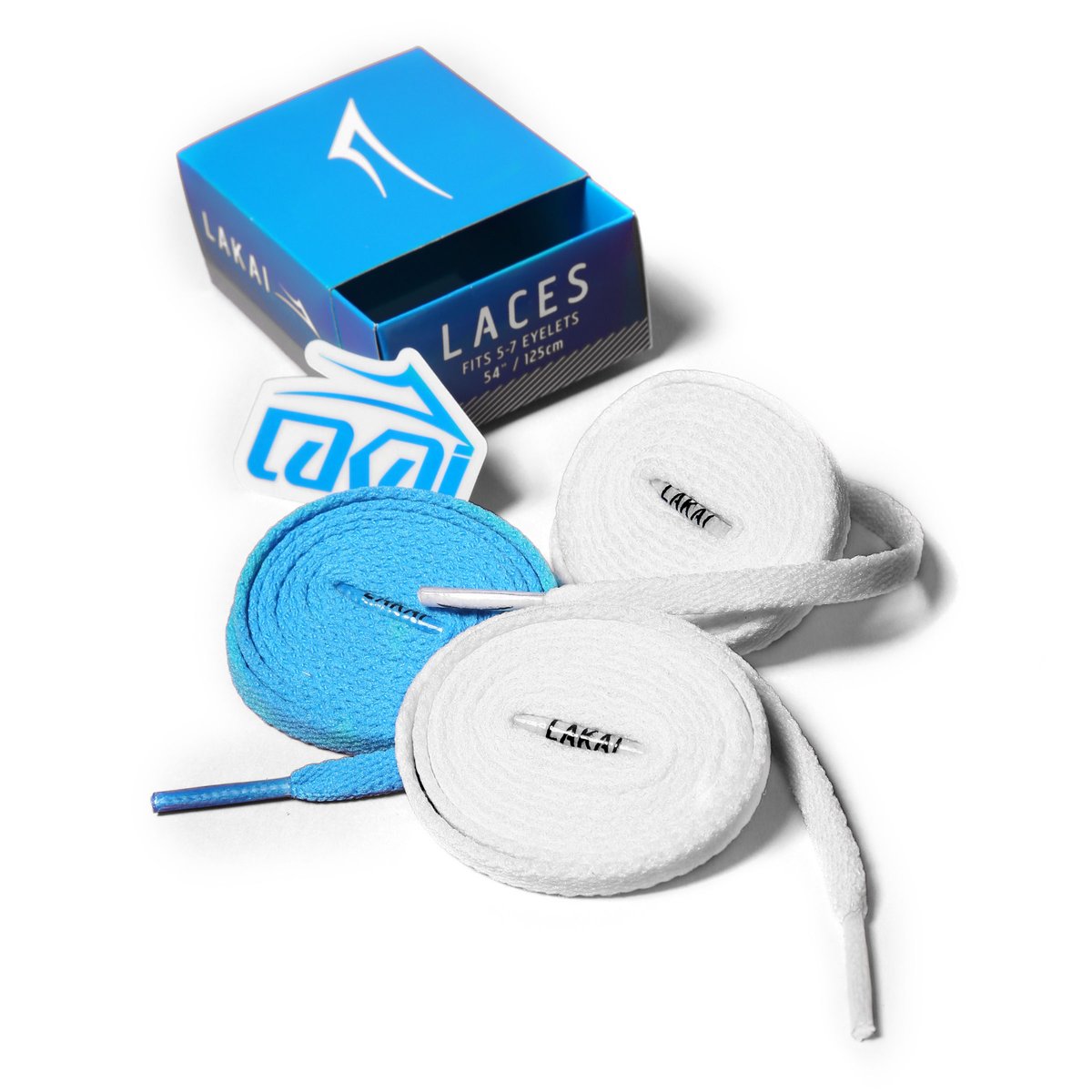 Includes sticker, 2 white laces and 1 cyan lace. All neatly contained in a Lakai mini lace box.