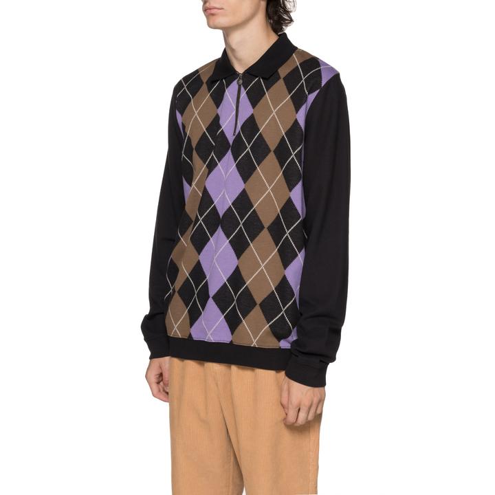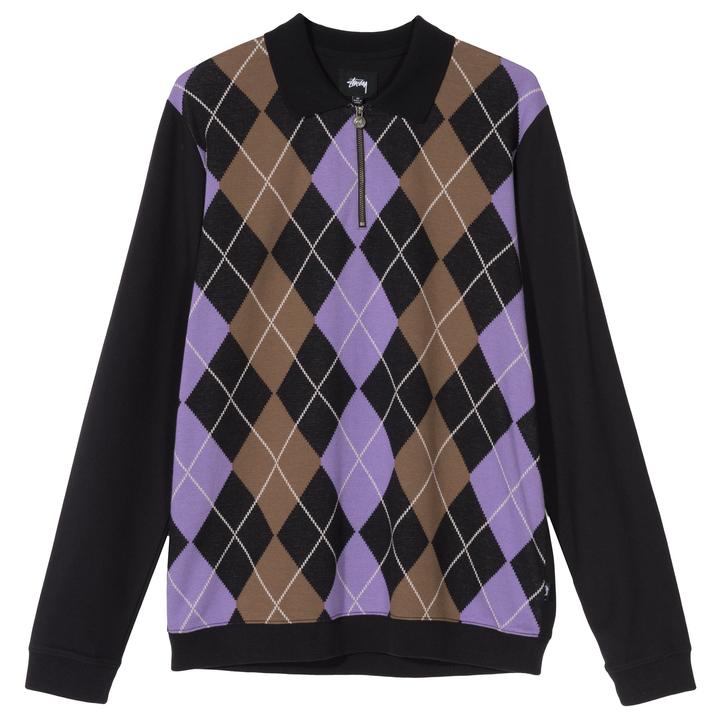 STÜSSY ARGYLE ZIP L/S POLO // BLACK