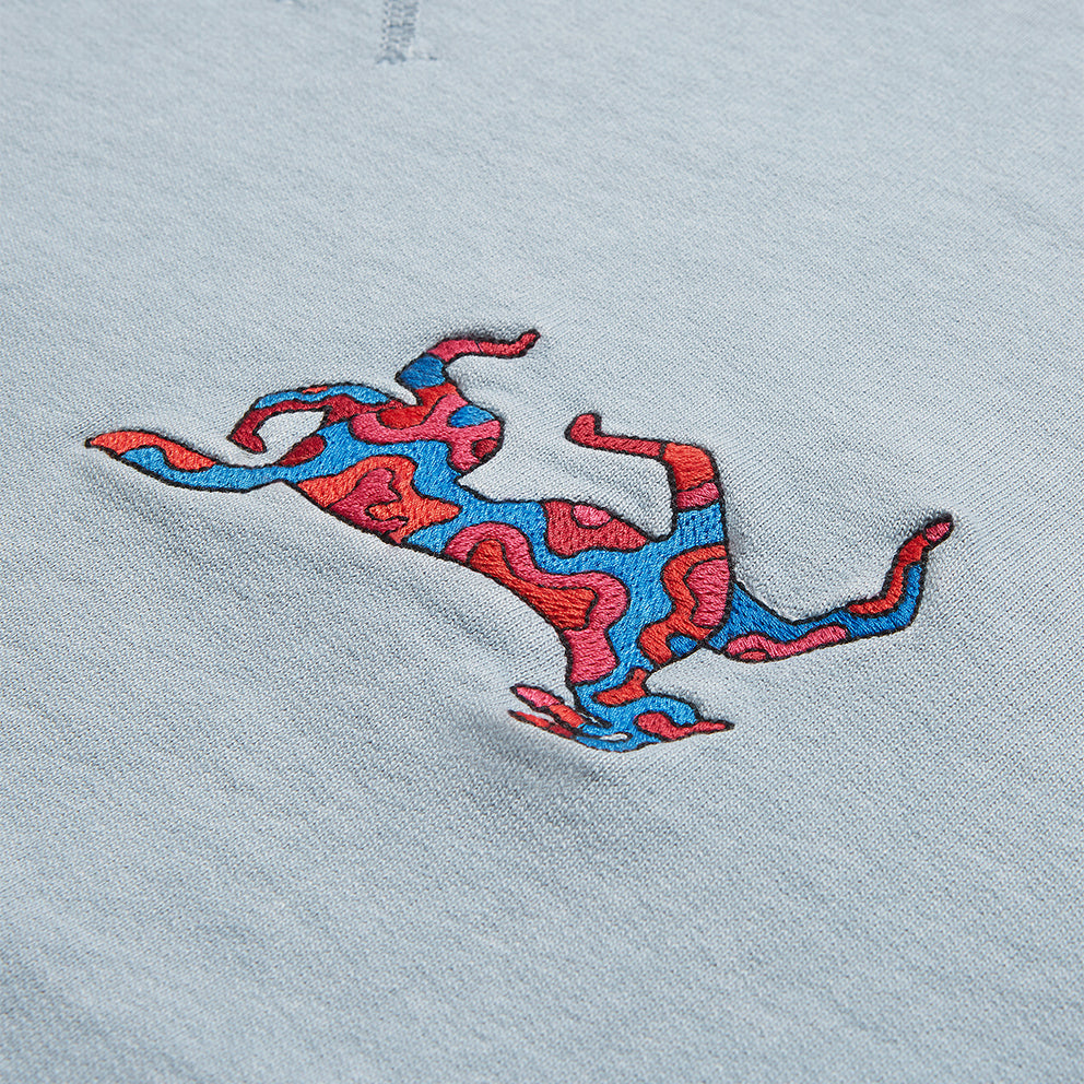 BY PARRA UPSIDE DOG RACE CREW NECK SWEATSHIRT // DUSTY BLUE