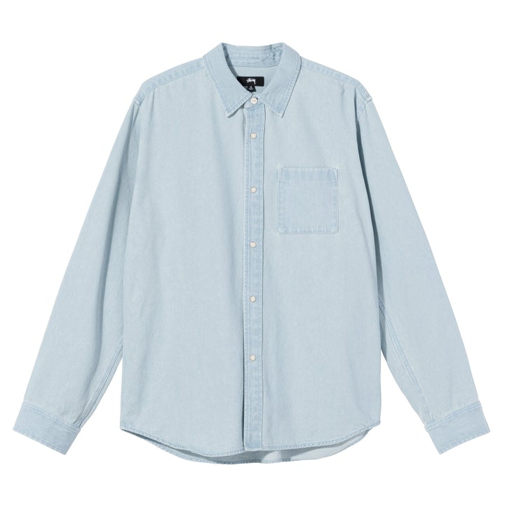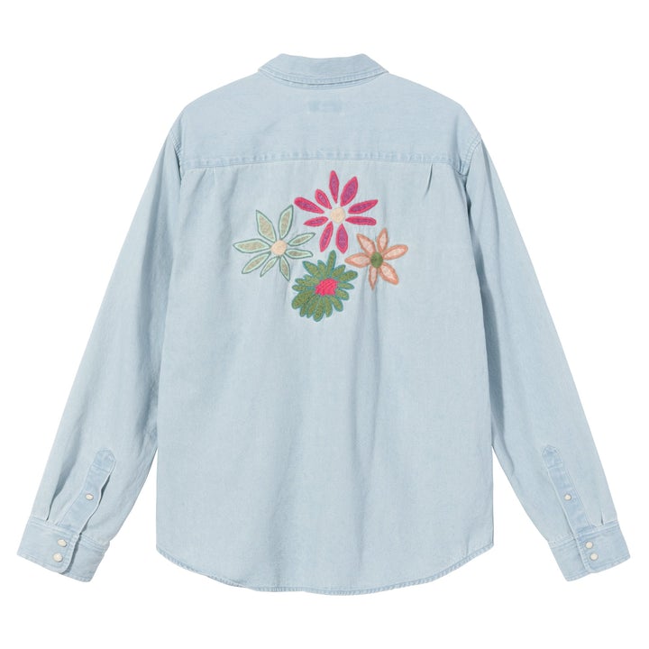 STÜSSY FLOWER EMBROIDERED DENIM LS SHIRT // LIGHT BLUE